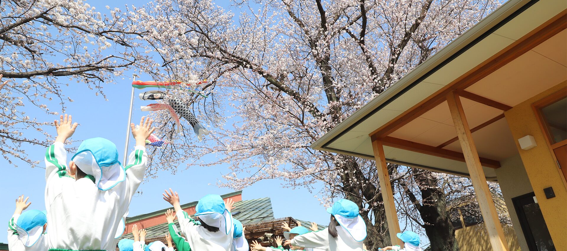 乳幼児期は将来の人格形成の重要な時期であることはいうまでもありません。豊かな感性を育むための基本である四季の感じられる園環境の中でのびのびと遊ぶ子ども達は輝いて見えます。同年齢の子ども達との生活も異年齢の子ども達との生活も必要不可欠です。また、みんなで一緒に同じ経験をすることも自ら遊びを動的に展開することも必要不可欠なことです。様々な経験は未来に向かっていく生きる力となって子ども達の個性豊かに育つ土台となることでしょう。