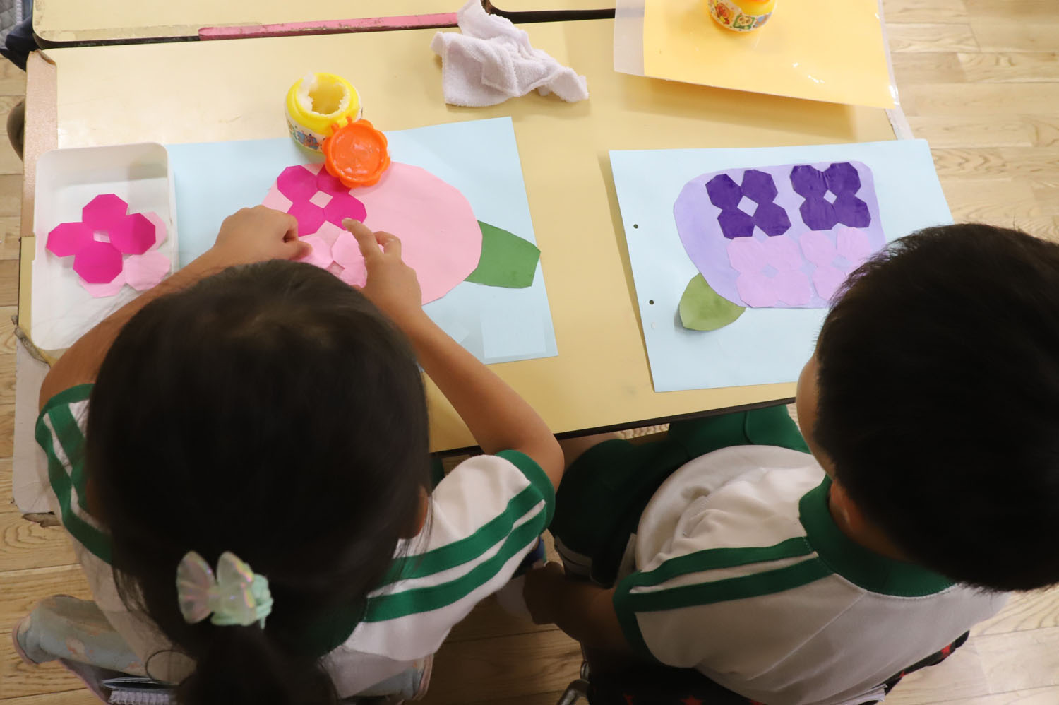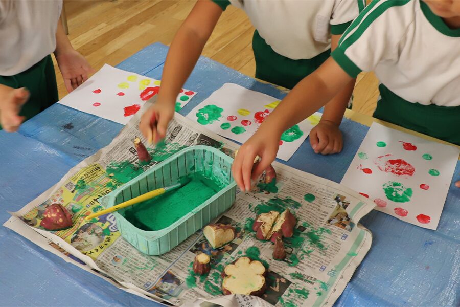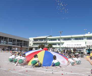 年少から年長までみんなで元気に身体を動かすことに喜びを感じる楽しい時間。目標を達成した瞬間の充実感が自信につながり前向きに生きる態度を養います。