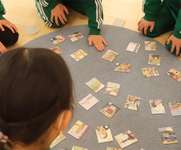 年少から年長まで週1回の楽しむ英語の時間。なんだかわけのわからない時間だけれどもとっても楽しい時間。知らず知らずのうちに英語の世界の中に引き込まれる不思議な体験。