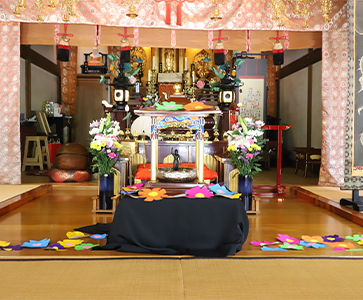 その系譜を継いで昭和31年10月に大聖寺本堂を保育室とした幼児教育施設が誕生し昭和53年9月には学校法人恵光学園が運営する群馬県認可を受けた大聖寺幼稚園となりました。平成10年4月には木造部分を増改築し、原神社隣接の原幼稚園と合併し「ポケット幼稚園」と名称変更して現在に至っています。